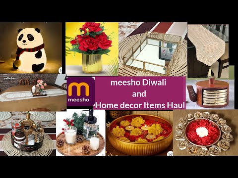 Meesho Diwal Decor Items Haul . Meesho Tray,Artificial Flavors,Table Runner,lamp, Plant,Urli bowl,