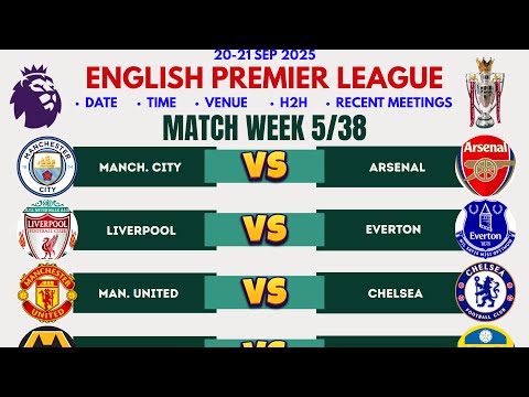 English Premier League Fixtures Week 5 | EPL 2025/26 Full Schedule