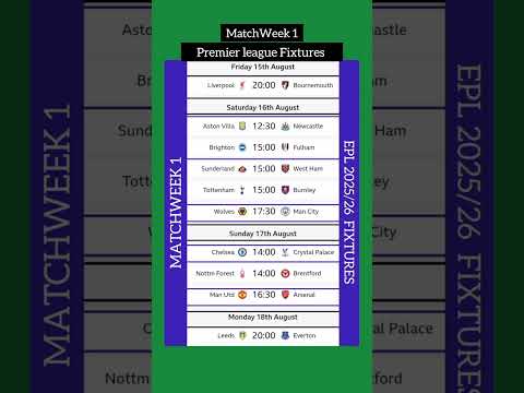 MW 1 Premier League Fixtures 2025/26