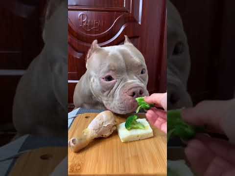 Cute Dog Eating Chicken Leg and Broccoli #ASMR #MUKBANG #Relaxing #90 #shorts