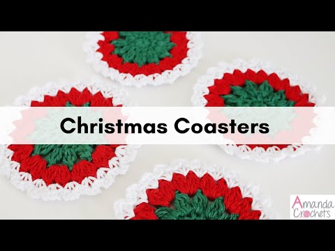 Crochet Christmas Coasters. Step by step Free Pattern