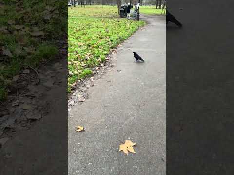 Walking with a duck in Clapham Common beneath tall trees