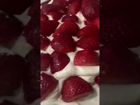 Easy strawberry shortcake! Cake mix, strawberries and pudding from ALDIs. #strawberries #cake