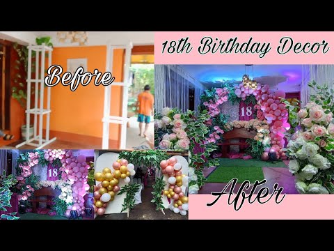 18th BIRTHDAY PARTY/ DEBUT DECORATION IDEAS AT HOME | balloon Garland, Flower Set up