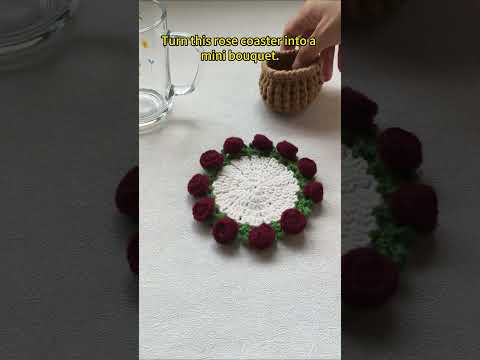 🏵️crochet rose bouquet into coasters #crochetanywhere #crochet #crochetrose #crochetbouquet