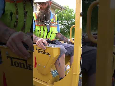 Underground fiber optic internet installation with stone driveway dig and bury