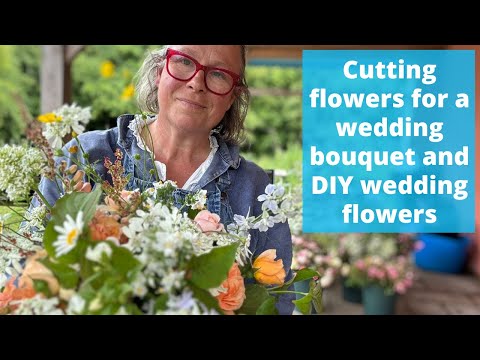 この花農家が、DIYウェディングフラワーの注文とブライダルブーケのためにバケツいっぱいの花を切る様子