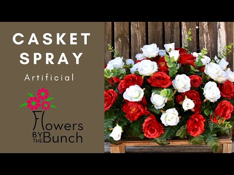 Artificial Red/White Casket Spray - Flowers by the Bunch - Live Stream