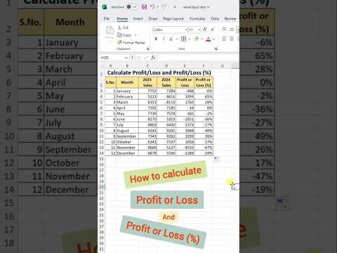 Calculate Profit, Loss percentage and profit, loss in #excel | How to Find profit loss percentage