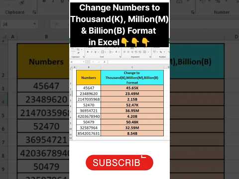 Convert number to thousands and Million #shorts #excel #excelshorts