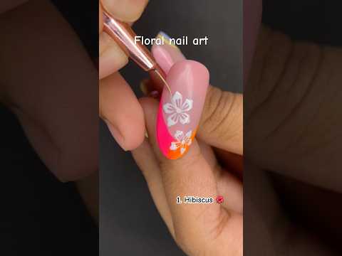 Floral nails | Hibiscus flower | How to draw hibiscus flower #gelnails #floralnails #hibiscus iscus