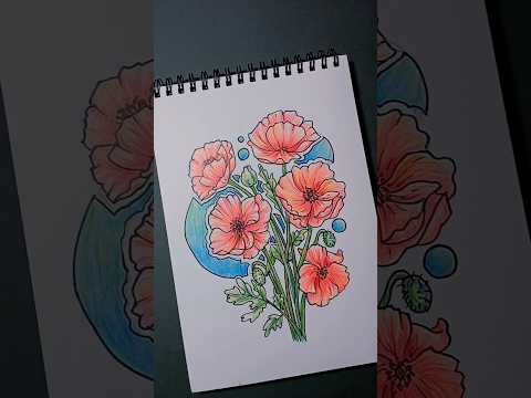 Drawing with colored pencils - poppy Flowers #study #drawing #motivation #poppyflower #flowers