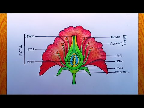 How to draw longitudinal section of flower step by step |Parts of flower | How to labelling a flower