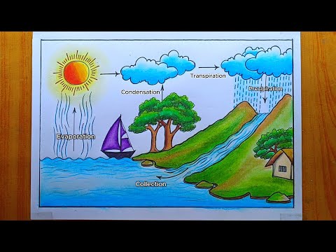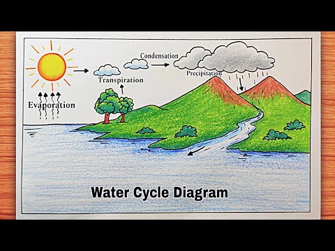 How to draw a water cycle easy step by step, Water cycle diagram drawing for beginners