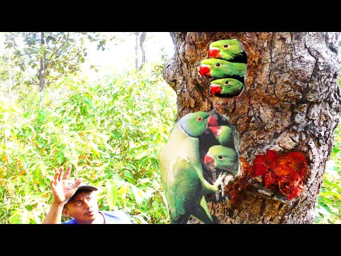 Man Climb a tall tree to catch a parrot | look after parrot and clean parrot nest for parrot live