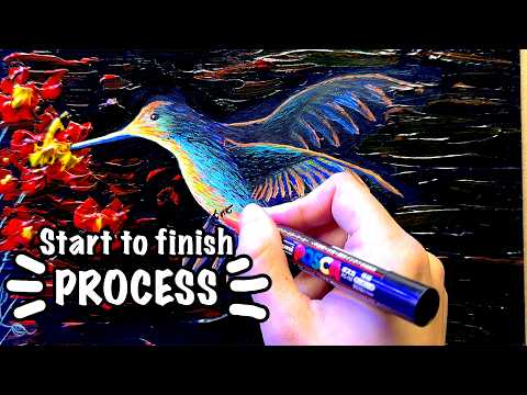 I Painted a Whimsical Hummingbird with POSCA Markers! My First Art Vlog