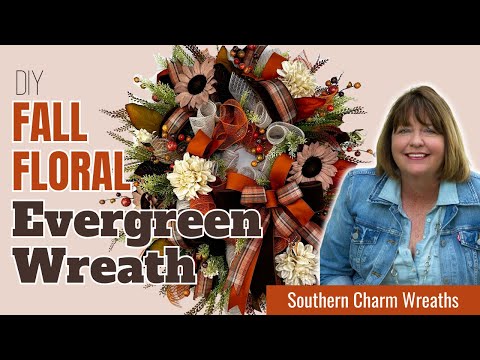 How To Fall Floral Wreath Deco Mesh on Evergreen Base | Wreath Making Tutorials