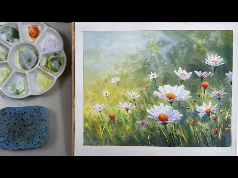 Easy Watercolor Painting of Daisy Flowers Step by Step