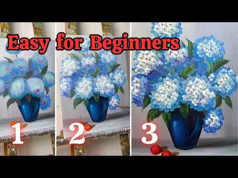 Step by step for beginners / How to draw flowers hydrangeas