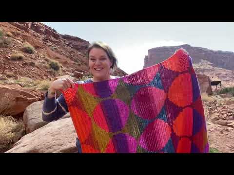 ライオンブランドのマンダラ糸を使ったキャニオンムーンライジングブランケットのサイケデリックなタペストリーの編み方チュートリアル