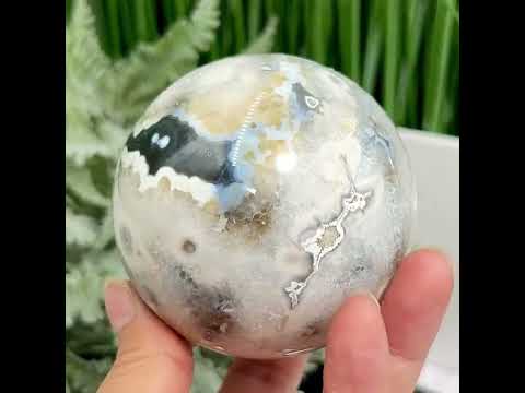 Argentina Black Flower Agate Sphere Healing Crystal Ball 407g 61mm