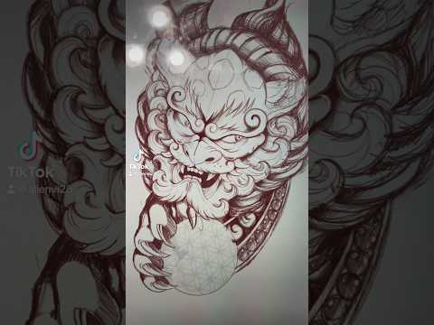 Foo dog statue and hannya mask outline ✅ #tattoo #asian #asianart #foodog #hannyamask #art #artist