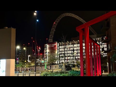 October 2023 Cold Autumn 🍁Night Walking Tour | London Designer Outlet | Wembley Stadium | U.K | 4K