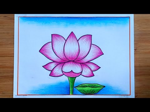 How to draw lotus easy scenery | how to draw a national flower