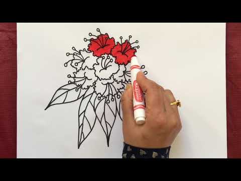 How to Draw and Colour लालीगुराँस (Rhododendron) with Crayons and Marker Pens