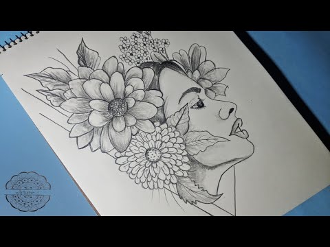 初心者向け花を持つ女の子の描き方 - 鉛筆スケッチ // 描画チュートリアル