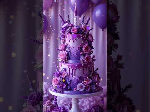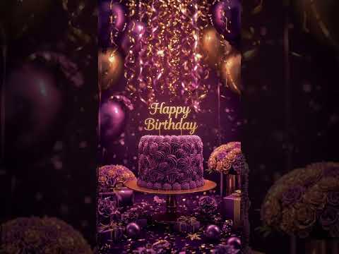 Happy Birthday Greetings 🎂 Elegant Golden & Purple Cake with Birthday Decorations
