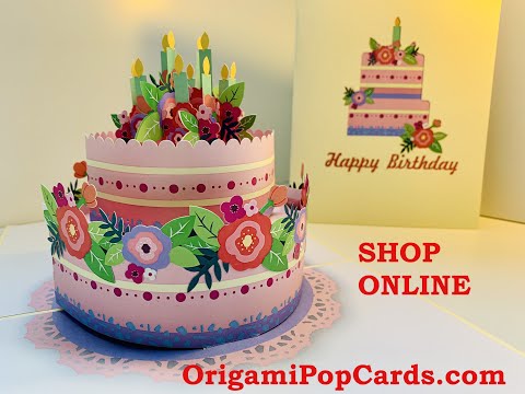 Birthday Cake with Pink & Purple Flowers Pop Up Card - Shop Online https://origamipopcards.com/