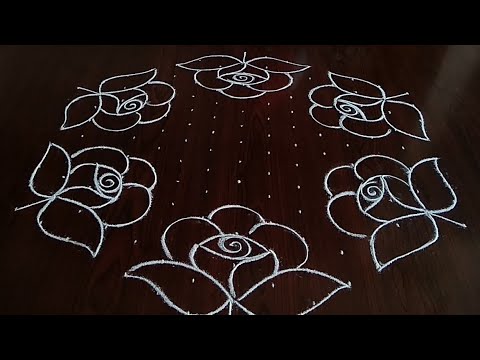 Easy rose flower design Rangoli (7×4) dot's...