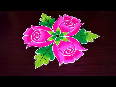 simple and easy rose flower rangoli/ latest flower rangoli @Swan Rangoli /creative rangoli