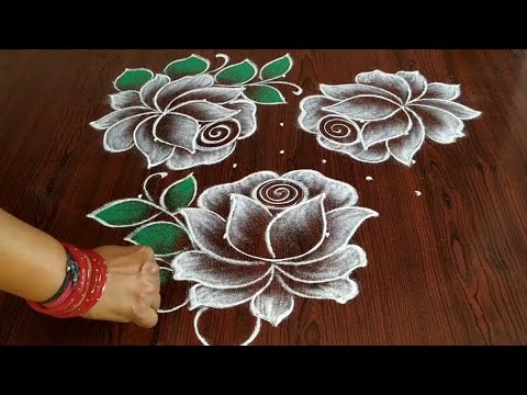 simple and easy rangoli design/ beautiful rose rangoli design