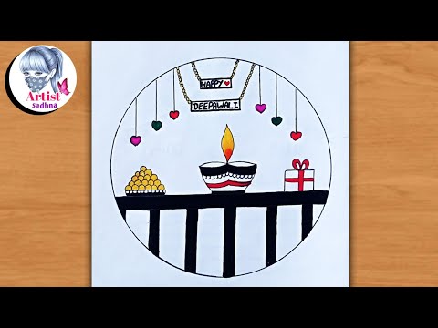 Happy diwali drawing easy steps // Easy drawing for beginners // Diwali poster drawing