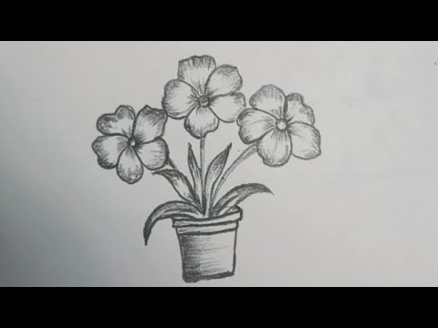 Easy Flower Pot Drawing / Flower sketch / Simple Flower drawing with pot