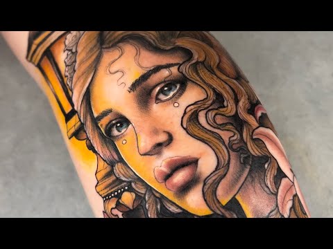 Neo Traditional Lady Face Tattoo - Real Time 4K