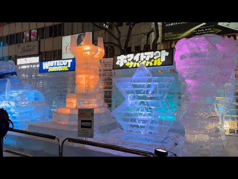 Sapporo Snow Festival 2025 - Ice sculptures in Susukino Site at night / 4K HDR