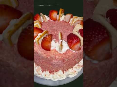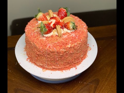 Strawberry Crunch Cheesecake Cake #strawberrycrunch #strawberrycake #cakes #cakeshorts #baking