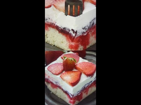 Strawberry Jello Poke Cake! #strawberry #strawberries #cake #cakerecipe #strawberrycake