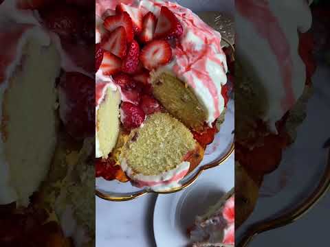 Strawberries & Cream Bundt Cake #cake #strawberrycake #food #foodie #baker #bakingrecipes #bakingtip