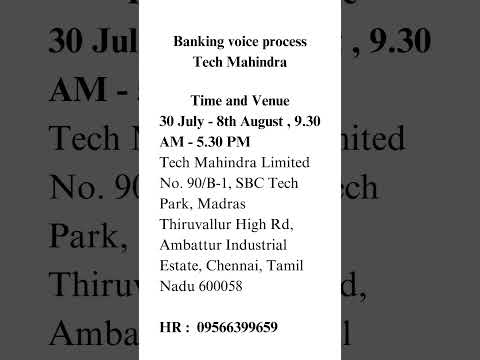 Banking Voice Process - Immediate Openings Chennai Location Tech Mahindra
