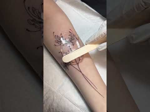 Fine line flower tattoo process, spider lily #shorts