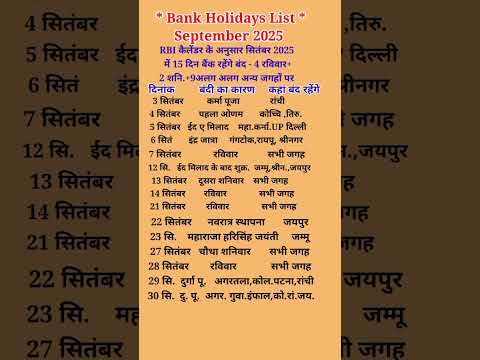 September 2025 Bank Holiday List|RBI Bank Holiday List September 2025#Bank Holiday List 2025 RBI#