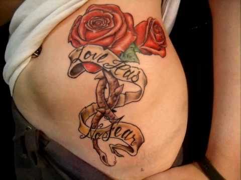 Roses and banner tattoo design