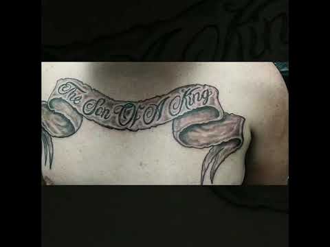 Chest Banner And Script Tattoo
