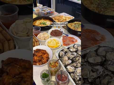 what my friends brought to our potluck party 🥳 #potluck #food