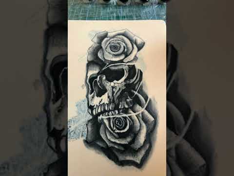 Skull and Roses Tattoo #tattooingforbeginners #howtotattoo #design #tattooideas