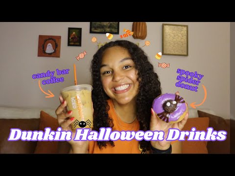 TRYING DUNKIN DONUTS NEW HALLOWEEN DRINKS 🎃🕷️CANDY BAR COFFEE & SPOOKY SPIDER DONUTS